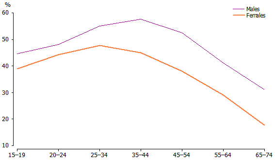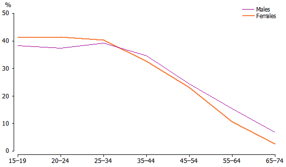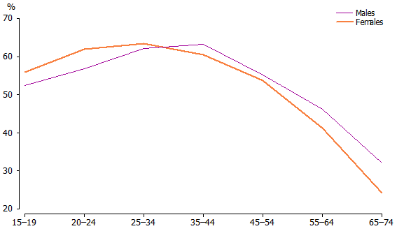 people aged 15 to 19 years, 63% for people aged 25 to 34