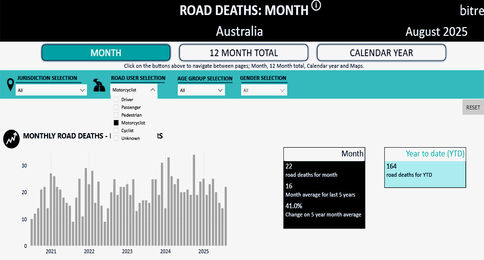 Categories of Road Death - Monthly - BITRE