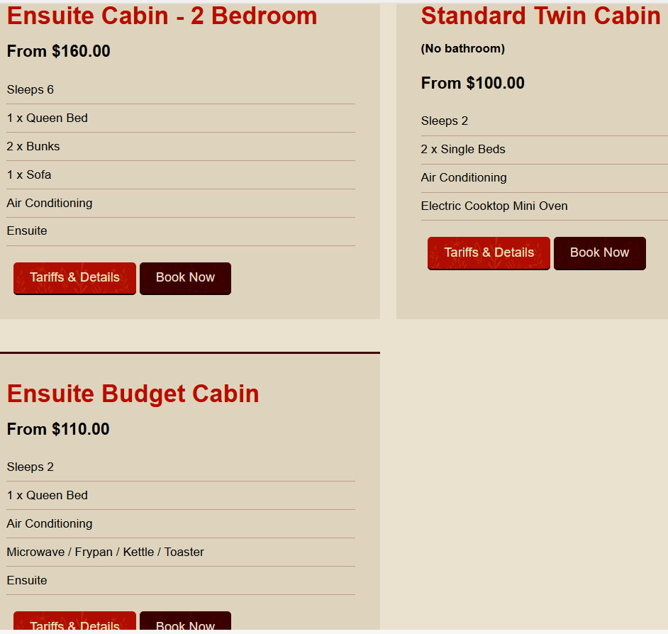 Smaller cabin prices at Colac Colac Caravan Park – Accommodation |