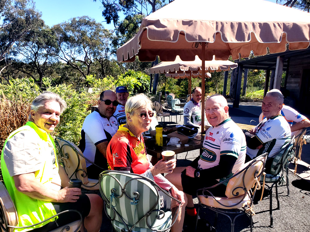Hornsby or Berowra to Saddles Kiosk at Mt White and back - 9 riders Terry aka Navigator started from Hornsby and included an additional 12km cycling to Calga turn-off and back. David aka OnceAnIronMan cycled from/to Hornsby. Jean and Henri cycled from Somersby. The other 5 participants started from Berowra..