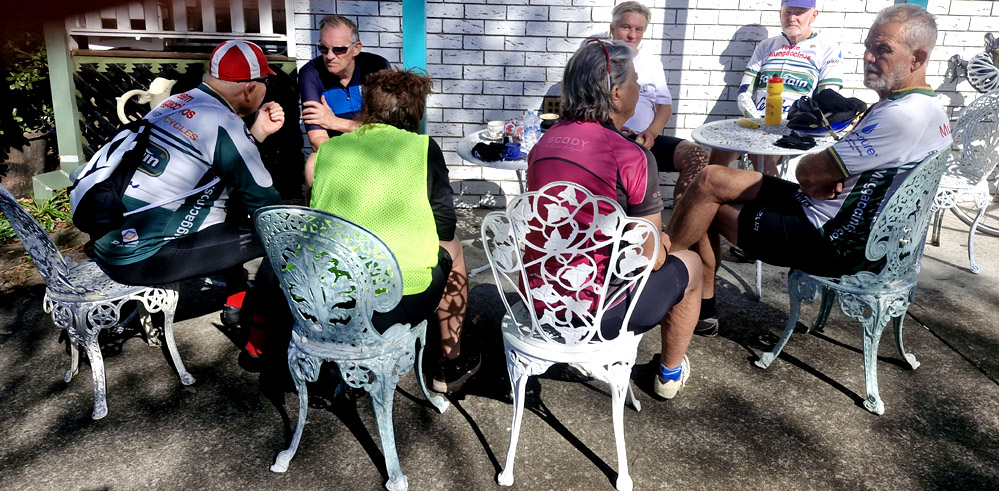Hornsby or Berowra to Saddles Kiosk at Mt White and back - 9 riders Terry aka Navigator started from Hornsby and included an additional 12km cycling to Calga turn-off and back. David aka OnceAnIronMan cycled from/to Hornsby. Jean and Henri cycled from Somersby. The other 5 participants started from Berowra..