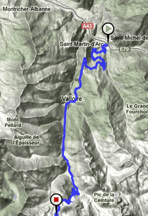 Drive 14.1km D1006 from our Base Camp at Saint-Jean-de-Maurienne to the township of St-Michel-de-Maurienne (el. 712m).