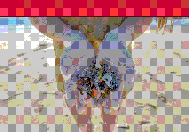 Microplastics can be released directly into the environment as small plastic particles (‘primary microplastics’) or from the fragmentation of plastic litter and larger plastic items (‘secondary microplastics’). It is estimated that the global release of primary microplastics into the ocean is the equivalent of every human throwing one lightweight plastic grocery bag into the sea each week.